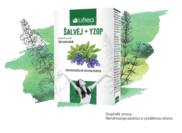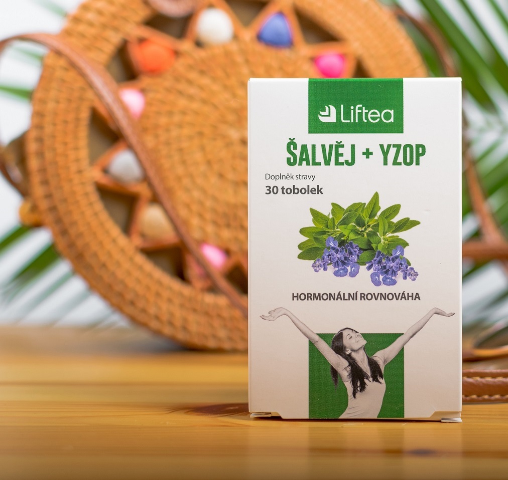 K udržení normální míry pocení přispívá i bylinka známá pod názvem šalvěj lékařská. Extrakt z ní je proto obsažen v přírodním doplňku stravy Liftea Šalvěj + Yzop, kde jej, jak už název napovídá, doplňuje ještě výtažek z květu méně známé byliny, kterou je yzop lékařský.